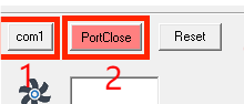 4. 在上位机软件中选择已配置的COM口(COM1~COM3),点击“PortClose”按钮,打开串口成功后按钮变为绿色。